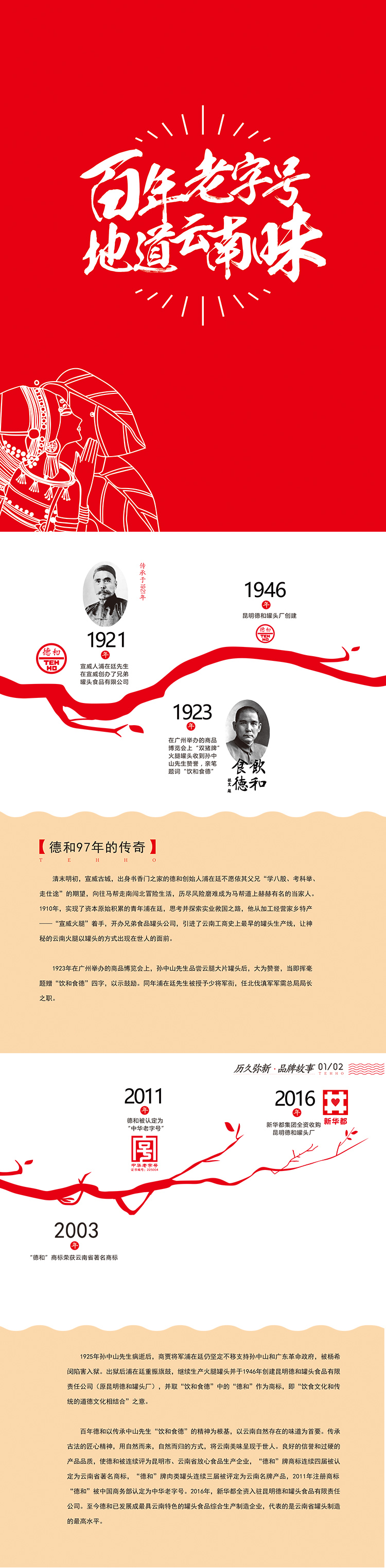 歷經(jīng)百年發(fā)展,德和現(xiàn)已形成集生產(chǎn)、加工、銷售為一體的綜合性食品企業(yè),主營云腿午餐肉罐頭、云腿罐頭、生鮮食品、香腸臘肉、調(diào)味醬、家常菜、烘焙糕餅、休閑食品、節(jié)慶食品等近兩百種產(chǎn)品。德和憑借原料好、品質(zhì)優(yōu)、味道佳的產(chǎn)品質(zhì)量,贏得了眾多消費者的喜愛和信賴,是云南家喻戶曉的知名品牌。